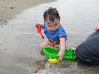 Yesterday, Grandma and Grandpa took Bubby and I to Grand Bend. Bubby had lots of fun playing on the sand and in the water (didn't even cry when I dunked him for the first time). We're going to go again next week when Auntie Kristen is here.